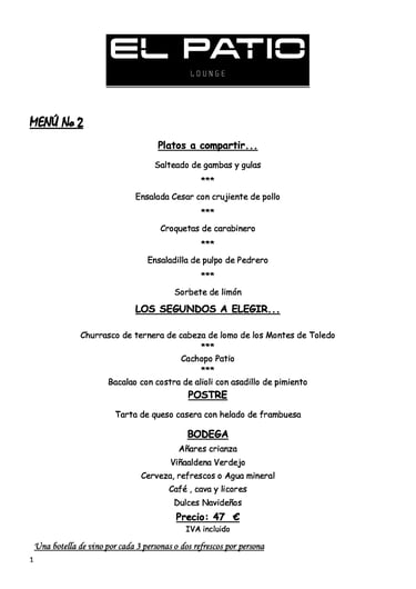 Descubre nuestra selección de Menús Especiales, cuidadosamente diseñados para celebrar momentos únicos. En El Patio Lounge, cada plato es una experiencia, y cada menú, una historia que contar. Sumérgete en sabores auténticos y celebra la vida con nosotros